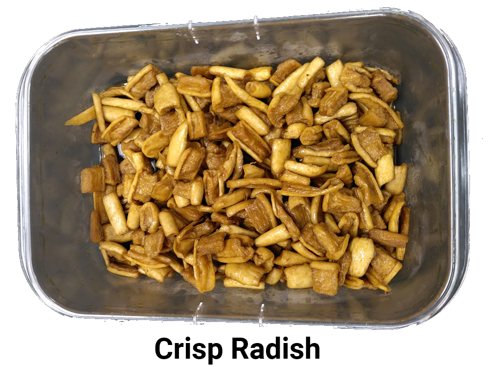 Preserved radish, aka dried radish, pickled radish or “luobogan,” refers to a variety of daikon radish that has undergone a drying process and is normally seasoned; it has a crispy texture.