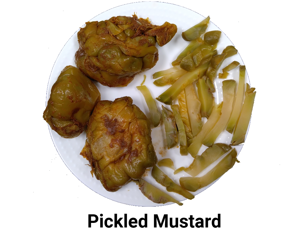 Fermented pickled mustard, Chinese name “Zhacai”, aka Sichuan preserved vegetable, is a kind of pickled mustard stem, originating in Chongqing City, China. It is produced from the stem of a mustard plant, referred to as “qingcaitou”. This process involves wind-drying, salting, and pressing to remove moisture, followed by seasoning and fermentation. The final flavor profile is characterized by its crunchy texture, savory-sweet taste, and mild spiciness.