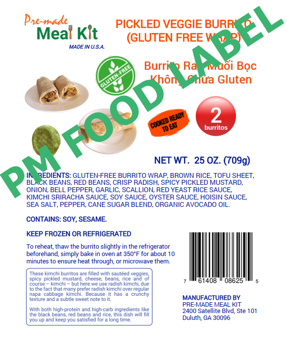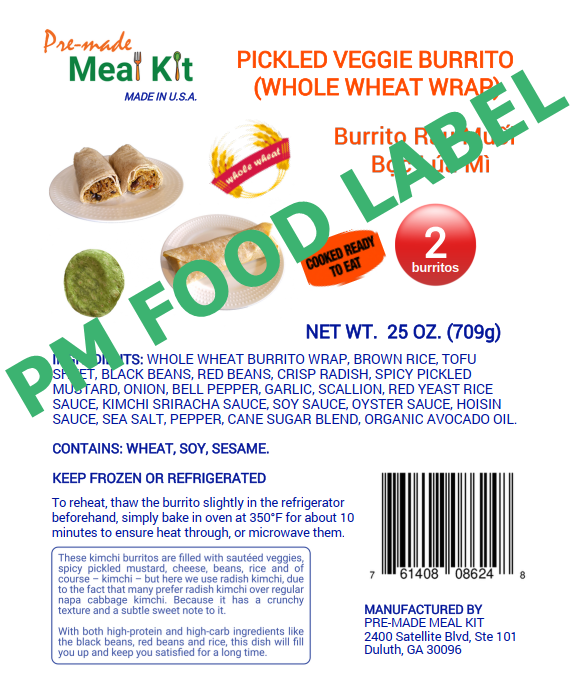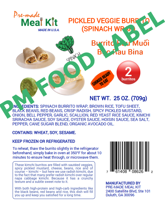A fermented veggie burrito is a unique fusion dish first created by Pre-made Meal Kit team. It merges Chinese preserved/pickled radishes and fermented pickled mustard with the well-known format of a Mexican burrito, incorporating brown rice, beans, tofu sheet and a variety of other fillings.